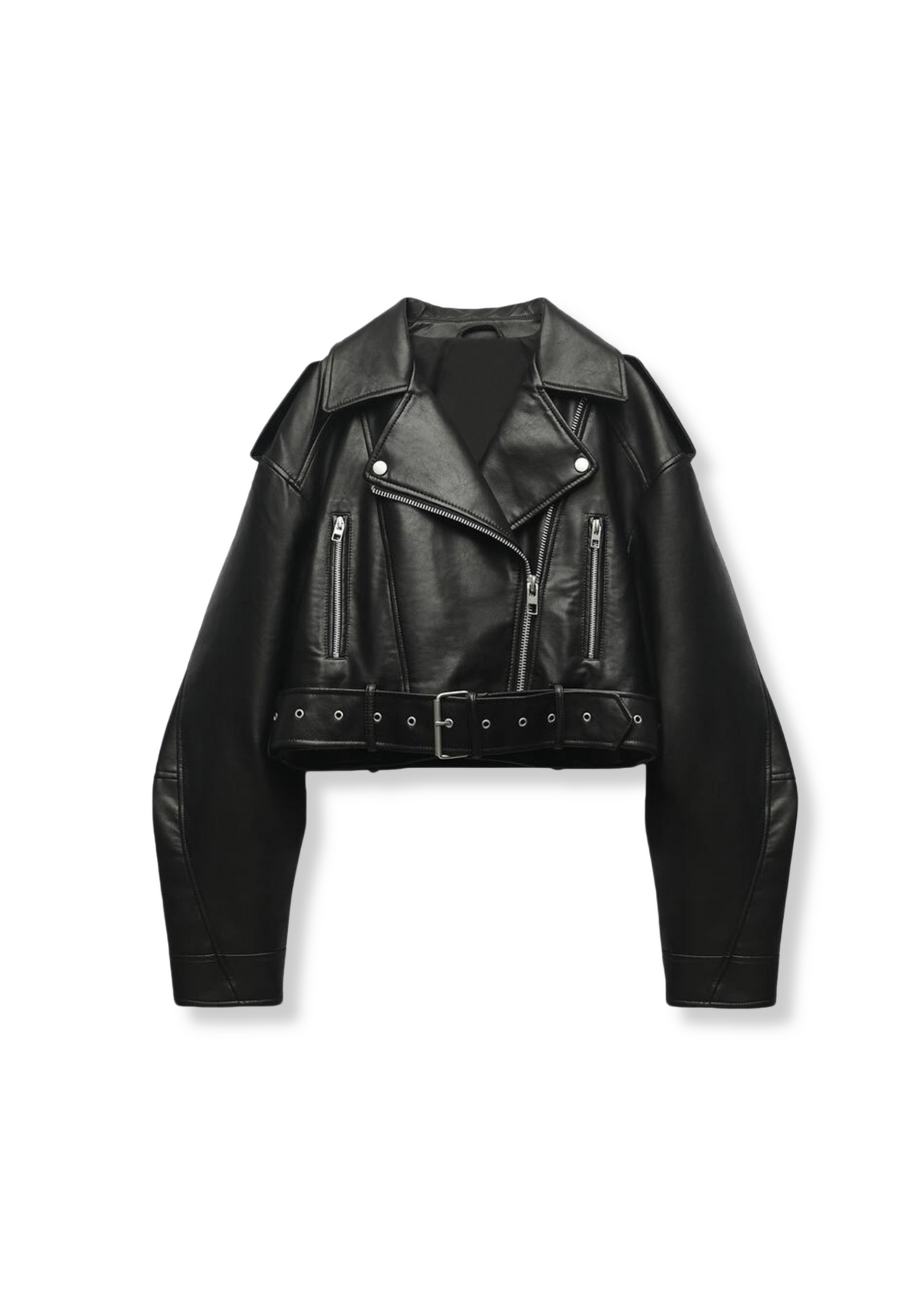 BIKERJACKE IM CROP- SCHNITT AUS KUNSTLEDER